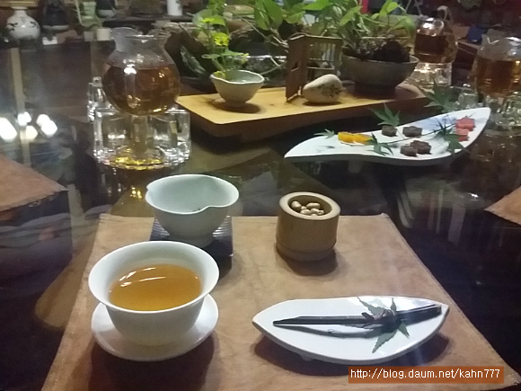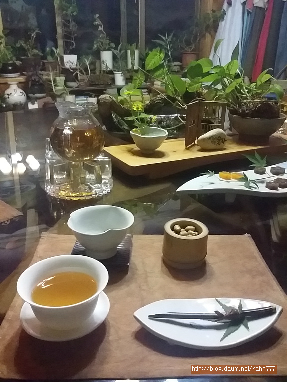 다우 건축주가 저녁 자리를 예약한 곳은 울주의 척과에 있는 '푸른솔이 있는 집'이었다. 그 집에 도착했을 때는 어두워지기 시작하는 시간이었지만 사방이 산으로 둘러 싸인 산골이었다. 천연염색을 주업으로 하면서 차와 식사는 예약된 손님만 찾는 특별한 곳이었다.