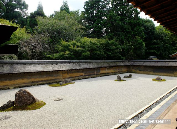 정원과 마당은 채움과 비움의 차이이다. 정원에는 수목과 화초, 연지와 정자 등으로 볼거리와 즐길 거리를 채우는 공간이다. 일본 전통가옥의 외부공간은 쓰임새의 마당이 아니라 볼꺼리의 정원으로 꾸몄다. 정원을 조성하면서 어떻게 채우느냐에 따라 그 기능이 달라진다. 일본 정원 중 백미라 일컬어지는 료안지龍安寺 석정은 비워서 가득 찬 공간空間의 경지를 보여주고 있다. 그곳에는 비워져 있지만 꽉 들어찬 공간의 미학에 호흡이 멈춰진다.