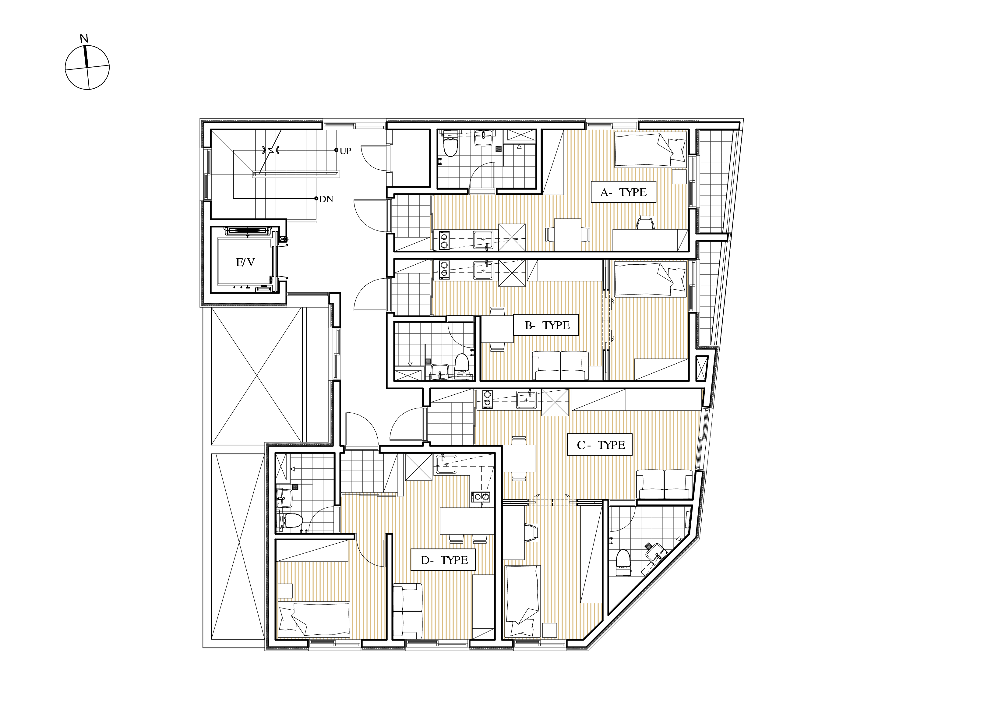 방의 상부에는 다락이 설치되어 충분한 수납 공간을 가지면서 옥상을 마당으로 쓸 수 있는 편리함을 제공한다.