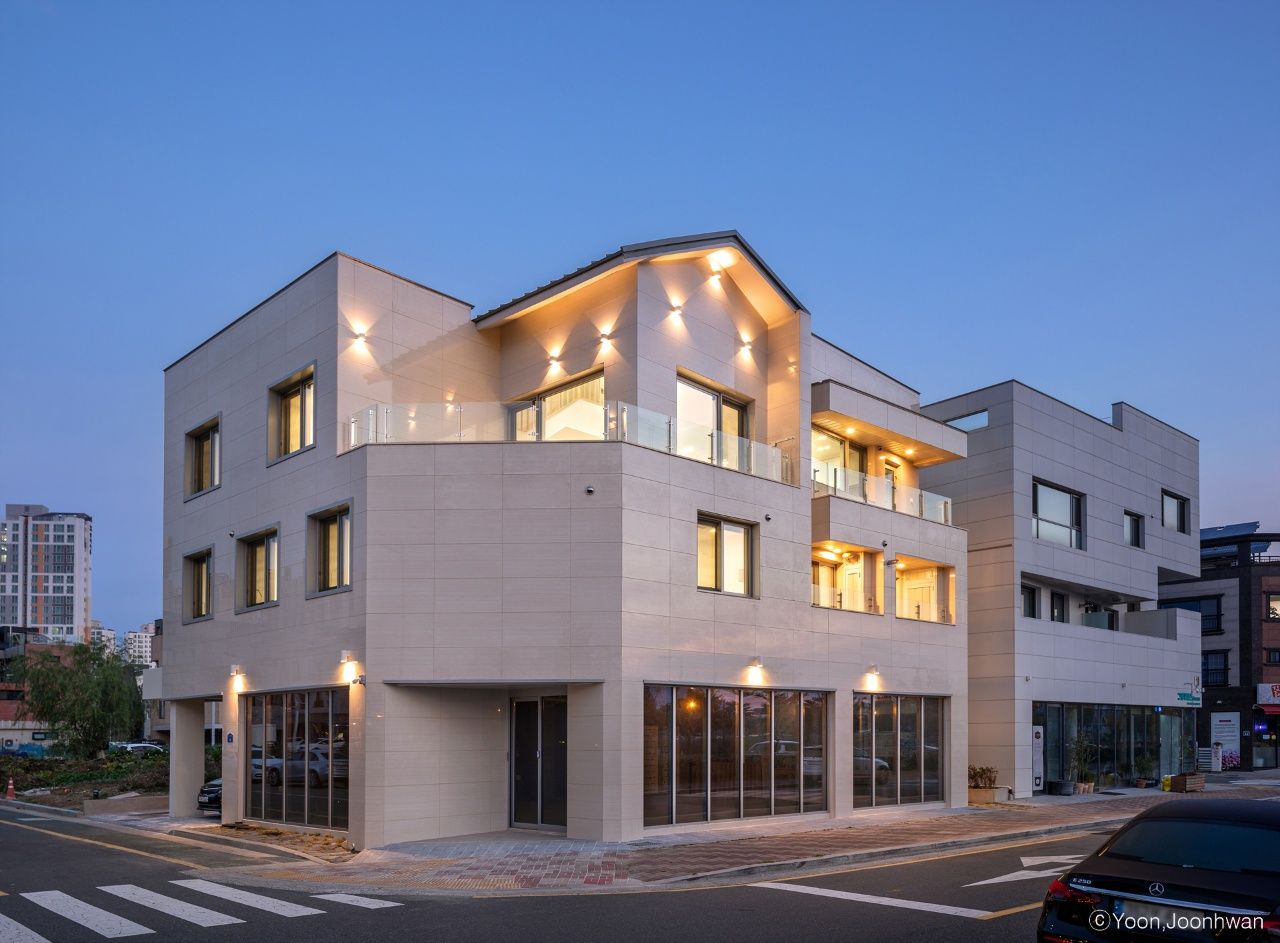 부산 명지동 상가주택 다가구주택 단독주택 근린생활시설 근생 카페 원룸 투룸 가벽 설계 마당 처마 다락 경사지붕 박공지붕 징크 지구단위계획 부산진해경제자유구역청 강서구청 엘리베이터 승강기 EV E.V E/V 유리난간
