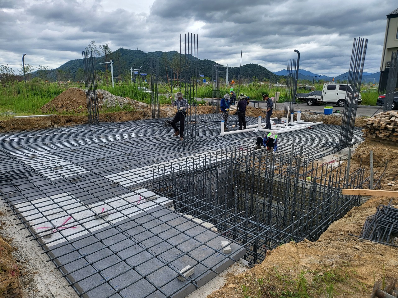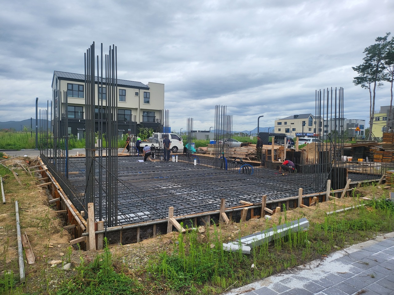 WHITE HOUSE 공사가 30℃가 넘는 염천에도 불구하고 일층 바닥 콘크리트 타설을 눈앞에 두고 있다. 행정 처리가 늦어져서 시공 계약을 하고도 착공까지 시간이 많이 지체되었지만 현장은 더위를 무릎 쓰고 일정을 맞추기 위해 애쓰고 있다. 시공사인 단단한종합건설의 대표가 직접 현장을 관리하면서 열과 성을 다하고 있는 것이 일일 카톡 보고로 확인이 된다.