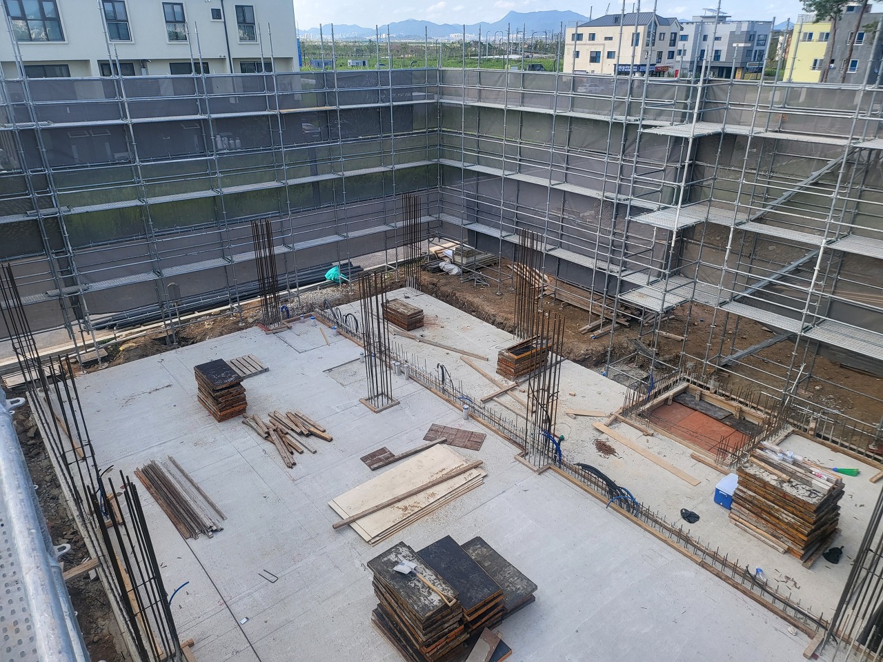 에코델타시티 상가주택, WHITE HOUSE 이층 바닥 골조 공사 중 | 건축물 명 : 에코델타시티 상가주택-WHITE HOUSE 설계 : 도반건축사사무소 건축사 김정관, 설계담당 김풍부 시공 : 단단한종합건설주식회