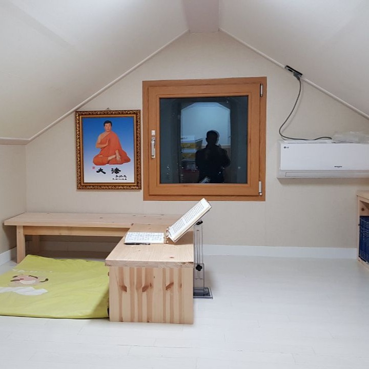 또 하나의 큰 공간은 유효면적이 10 평 가까이나 됩니다. 다우가 참여하는 모임의 정기적인 회합장소로도 쓸 수 있는 크기가 됩니다. 경사진 아랫부분은 수납장이 설치되어서 충분히 여유로운 수납공간이 확보되었습니다.