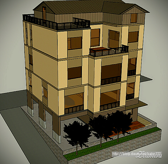 사층에 다우가 살 주택이 들어가게 되는데 한층이 더 있는 건 다락층입니다. 단독주택과 공동주택을 뚜렷하게 차이를 둘 수 있는 건 아마도 다락층의 유무가 아닐까 생각합니다. 다락층이 있는 집과 그렇지 않은 집이 어떻게 다른지 글의 말미에 설명하도록 하겠습니다.