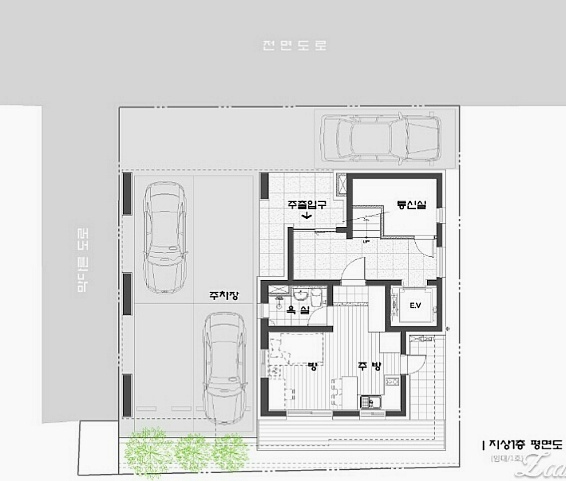 삼층평면이 제가 다우의 집짓기 작업에 함께 하게 된 근거가 되었습니다. 저를 찾아와서 조언을 부탁했을 때 세 가지를 수정하라고 했었지요. 첫째는 주방에 식탁을 둘 자리가 없다고 했고, 둘째는 안방의 욕실에 샤워부스가 없었으며 거실 앞에는 꼭 발코니를 두라는 내용이었습니다.